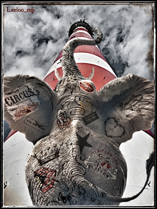 Eigentlich ein heiteres Bild durch die Farben und den tätowierten Elefanten. Aber mein Gedanke war ein anderer. Ich sah einen Beitrag über einen geretteten ehemaligen russischen Zirkusbär, dabei entwickelte sich diese Komposition in meinem Kopf. Ein Zirkuselefant welcher nach erlangter Freiheit die Welt neu entdeckt.